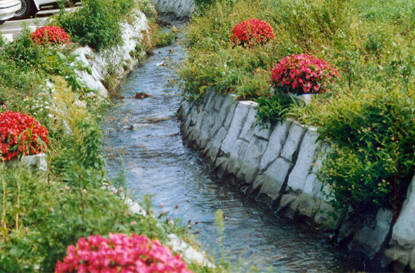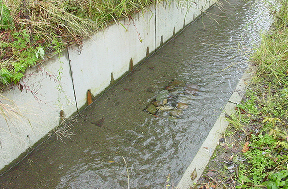 - 床版開口により水路内の水を地下水へ還元する環境水路です。