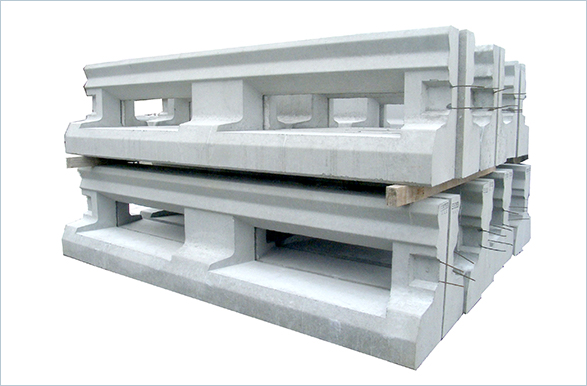 - 主として道路、河川、宅地造成などに用いるブロック式擁壁用の基礎ブロックです。現場打ちコンクリート基礎工に比べて工期が短縮可能なプレキャスト基礎ブロックです。