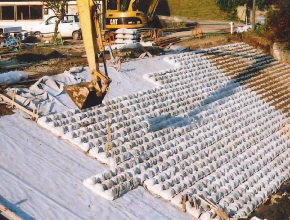 | 特徴 | 主として河川に用いる張りブロック護岸です。 植生型、覆土型があり植生型は開口部により被覆土が地盤と連続し、植物への十分な水分補給と根付きに優れます。また、大型製品でオリジナル連結リングによる簡単結束のため施工性に優れます。 |