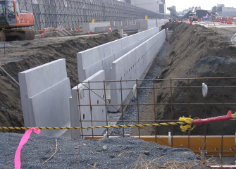 土留・擁壁類片土留側溝 能代火力発電所(石炭蓄積) 火力発電所内の石炭ストックヤードに使用されました。ストック用の特殊大型製品です。 製品名 片土留側溝 規格 A700×H1850/A700×H1650/A700×H1350 施工場所 秋田県能代市