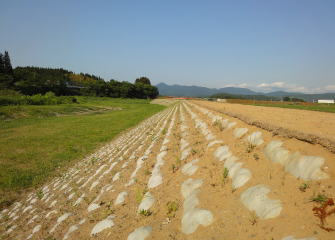 高水敷に使用しました。被覆土が地盤面と連続しているたに根付きに優れています。