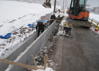 冬期間の施行でしたが、土留一体型の製品のため、複合工法に比べ工期短縮することができました。